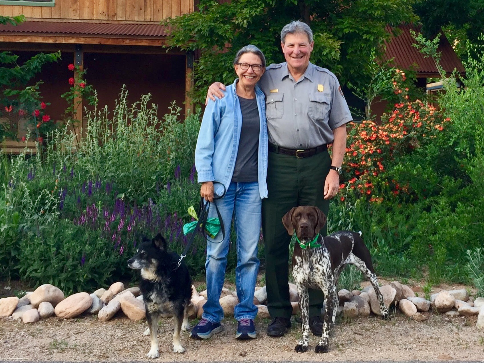 Dee, from London, with Jax at the Canyon of the Ancients Museum