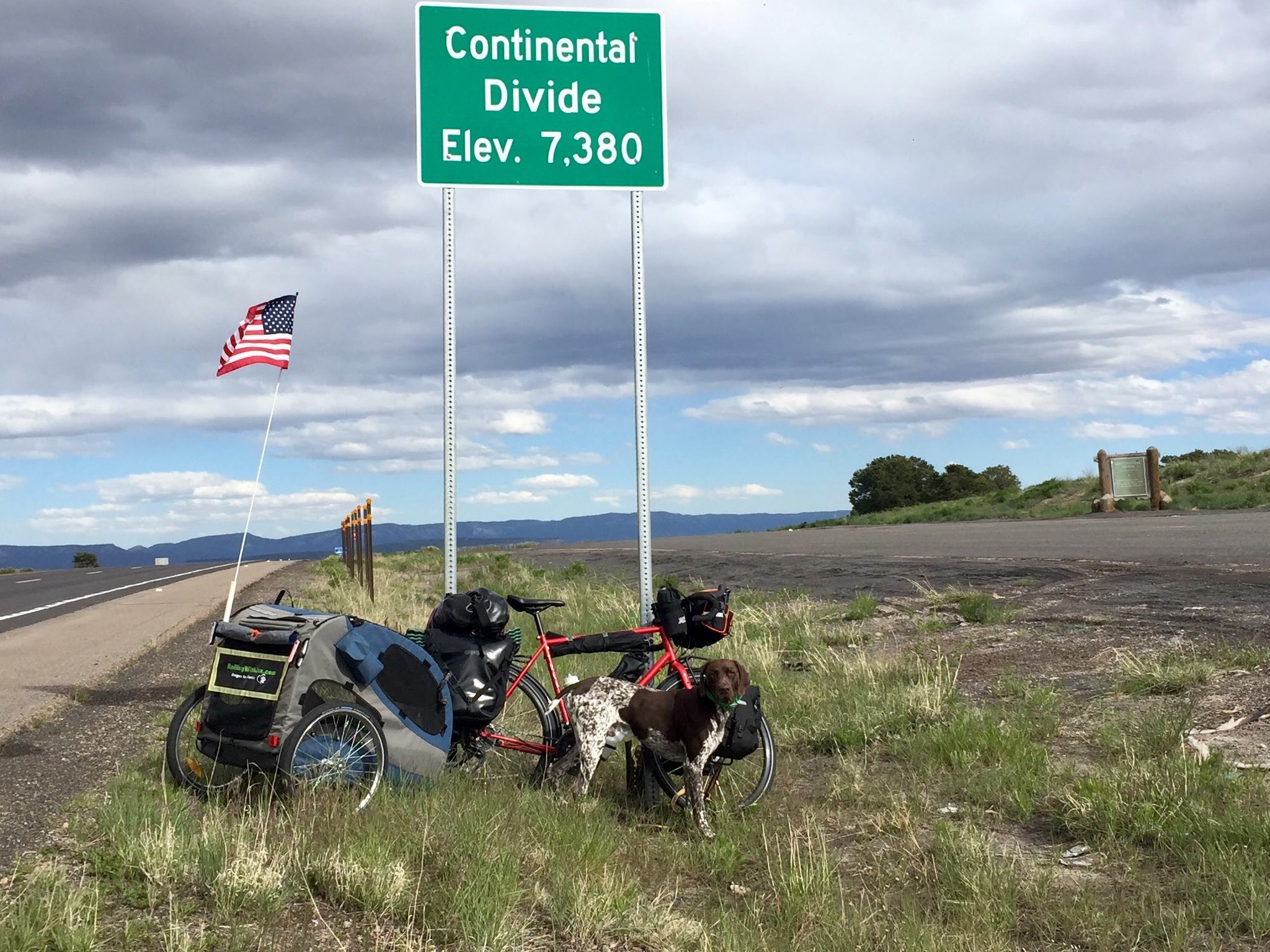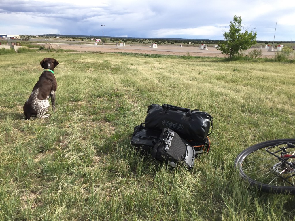 Jax and I have crossed into New Mexico, crossed the Continental Divide and crossed the 1,500-mile mark since the last post! We are spending Memorial Day weekend in Santa Fe to wait for the high wind advisories to pass and to visit a ranch that my great grandfather once owned, but that I had never seen. Our family left that business during WWII, but echoes of the ranch live on in us. My Mom’s stories of her and her cousins’ adventures on the 81,000-acre San Cristobal Ranch, now owned by the Singleton family, fired my imagination as a child, made me want to be a cowboy, made me dream big dreams. I think dreams like those and the possibility they might come true are some of the most important things our service men and women have fought and sacrificed for. Gratitude for that sacrifice is why Jax and I are out here. Please consider donating to K9s For Warriors to show your gratitude to those who risked their lives so we can pursue our dreams. Okay, back to bike tour-related stories after these three photos.