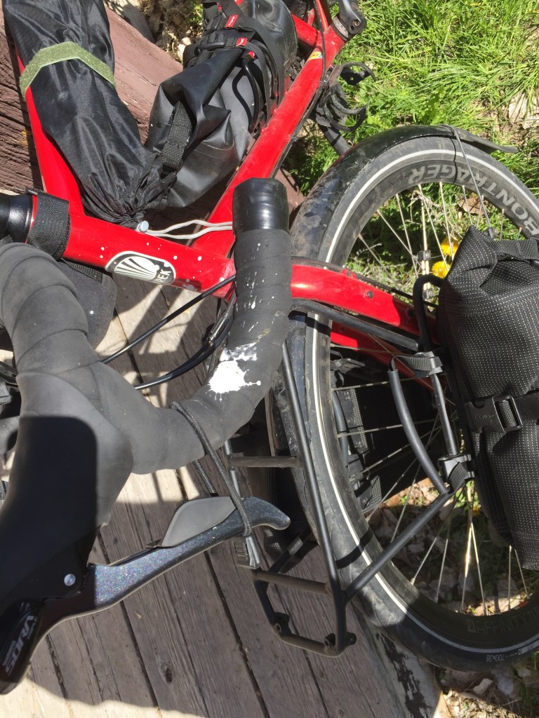 Wind has been our constant companion for the last couple of weeks. We’re about as aerodynamic as a brick. A strong headwind can double the time it takes us to get to the next stop, leaving less time to find supplies and recover for the next day’s ride. We have rolled along some rough roads, over some hills, through some hail and quite a bit of rain, but the wind has been the biggest challenge. At times I’ve had to pedal hard to go 7 mph downhill.