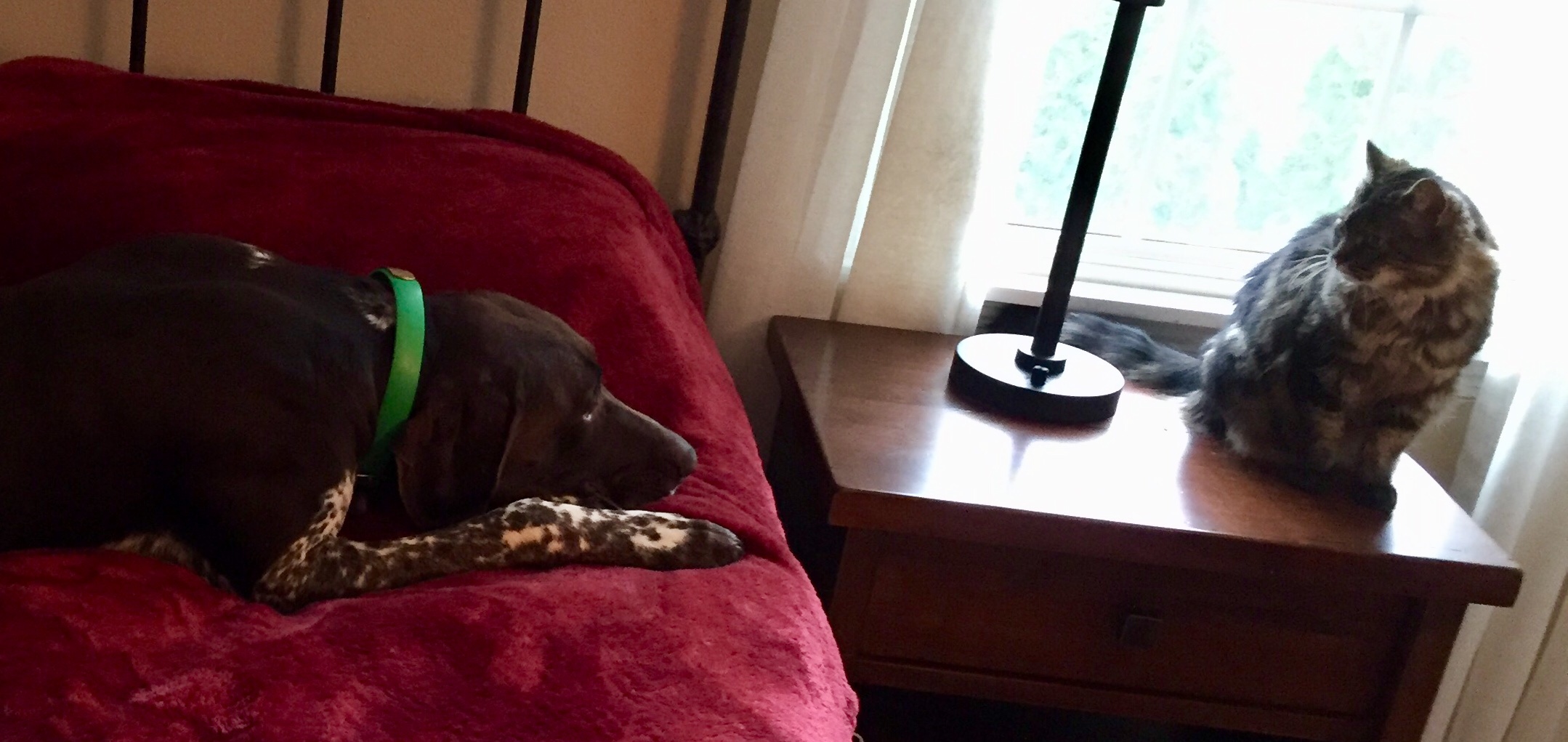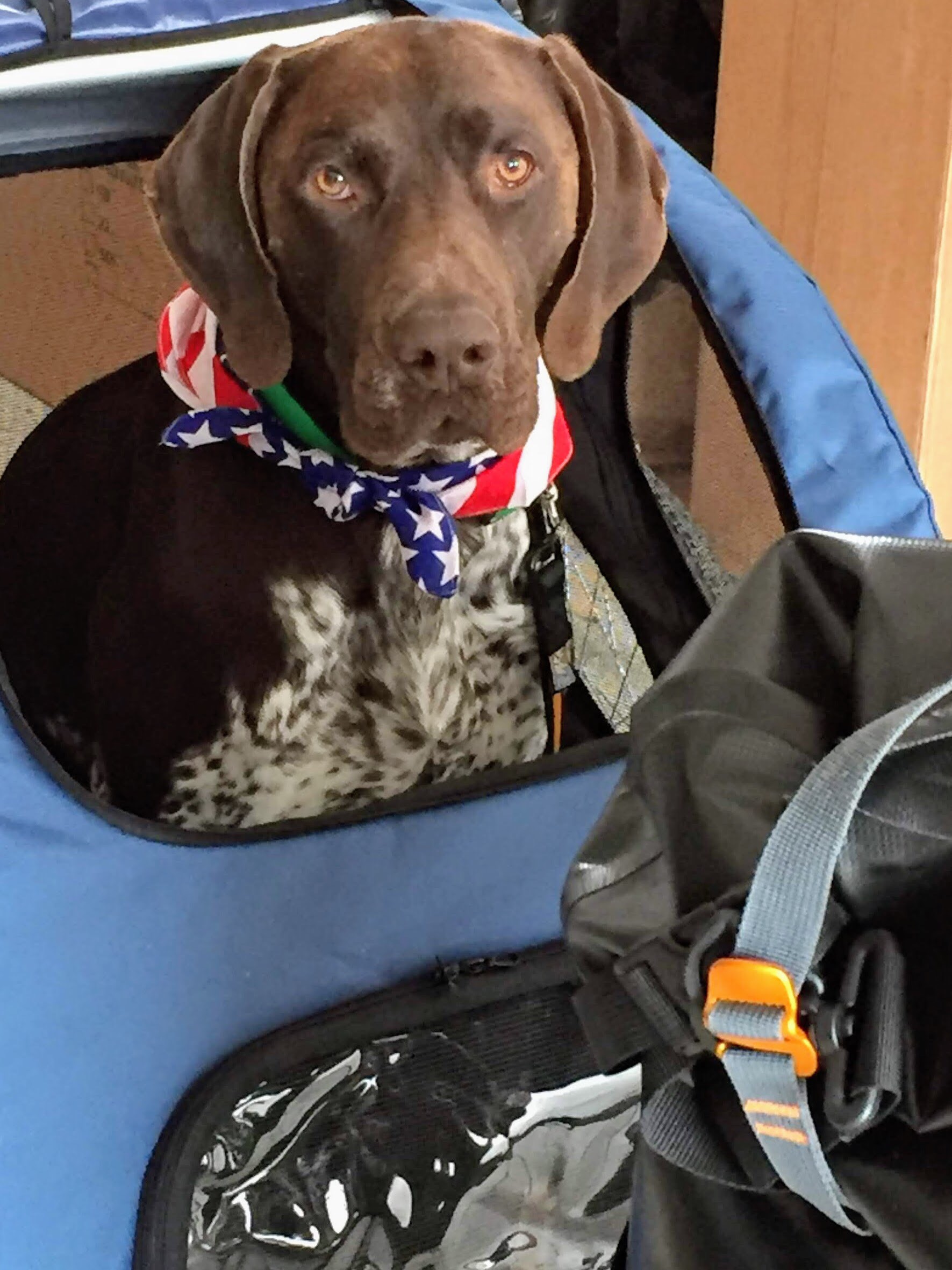 Trotting alongside the bike for a short distance every day shouldn’t be a strain for the Mighty Jax. On a normal day on the farm he runs 3-4 miles at speeds faster than I ride and during hunting season he covers 20-25 miles a day over rough ground, for 3 to 5 days at a stretch. I’ve been asked why I don’t have him pull me (a.k.a. “bikejoring.” See another GSP bikejoring here). He’s well-trained, but not for that and it’s a 3,500+ mile trip, so I plan on doing the pulling. Jax has a veterinary appointment next week to get checked out and to get any advice our vet has to give about making sure the Mighty Jax stays mighty all the way to Florida. 😉