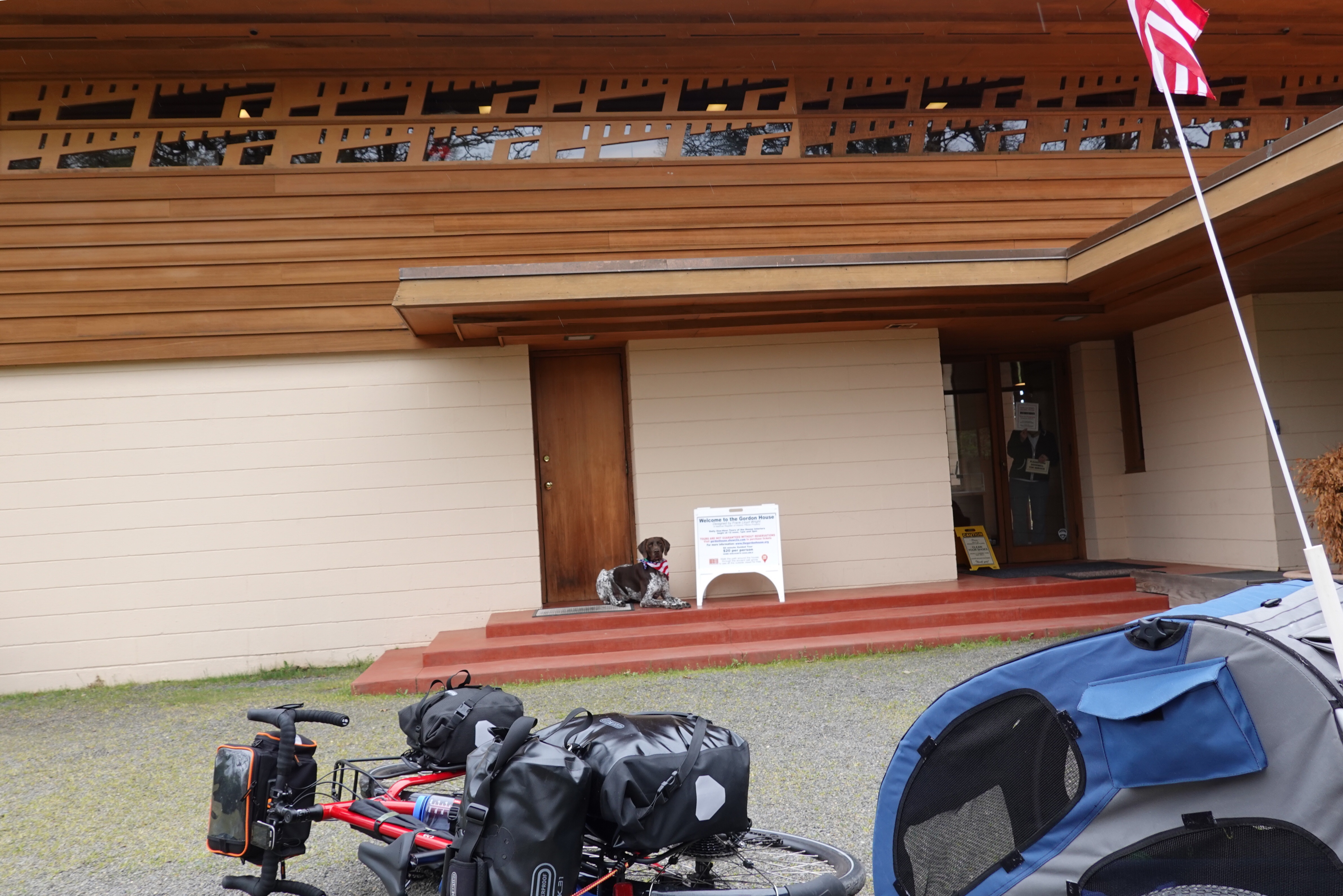 But every day isn’t like that and the next day was awesome. It did rain on and off, but what little wind there was didn’t come from in front of us. My derailleur “fix” gave out with 8 miles to go, but we made up the lost distance and traveled 39 miles to Detroit, Oregon, seeing some pretty territory and meeting some very friendly people and a sweet little Rottweiler on the way. Jax got to run about 4.5 miles, which was fun for both of us. It was a beautiful ride.