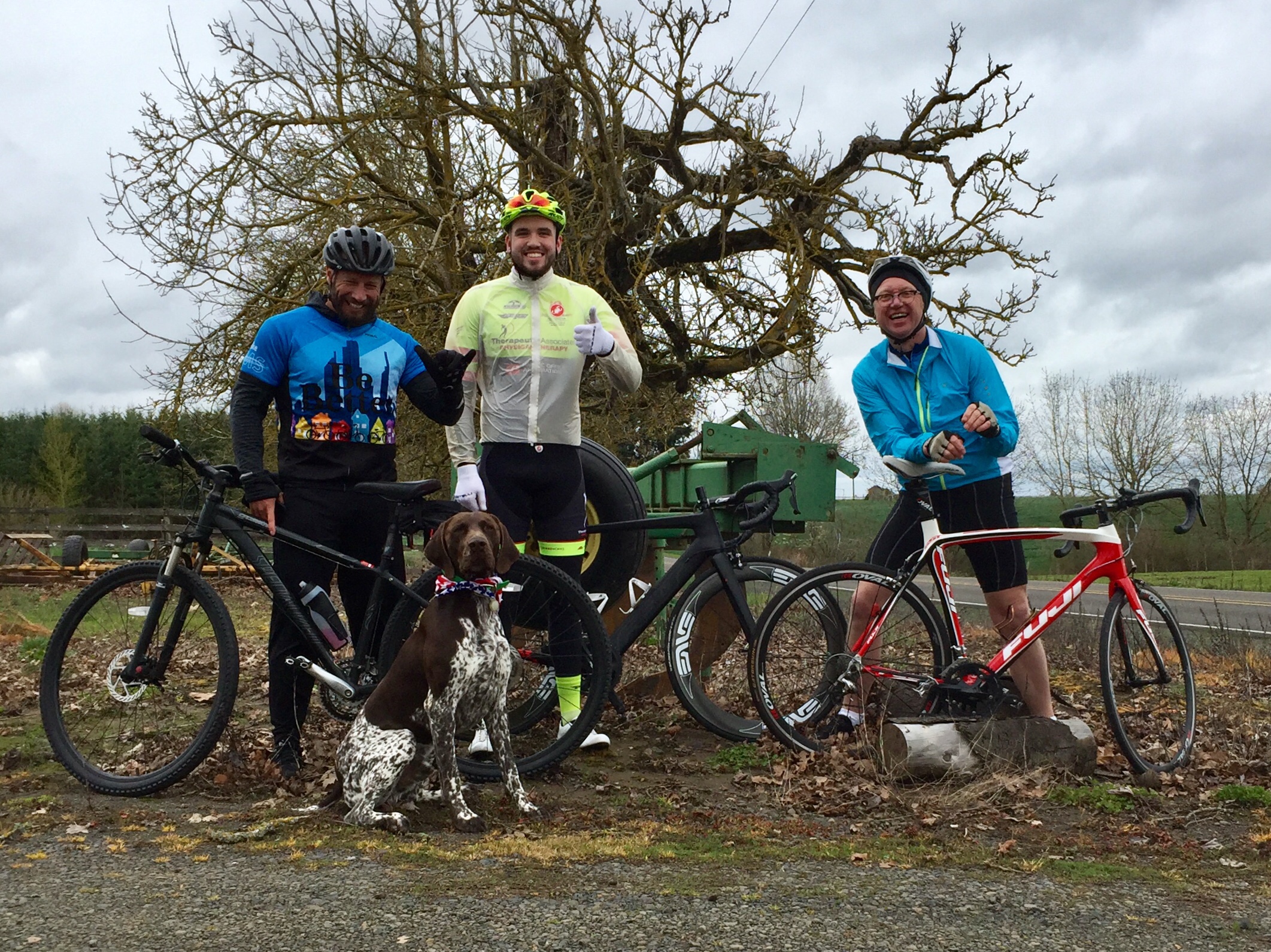 What a day! Not knowing exactly what to expect, we got an early start. Highway 22 out of Detroit is beautiful on a Sunday morning, even when it’s cloudy. As we rode, the clouds cleared a little, regrouped, then rained on us and repeated that cycle. The first 18-20 miles went smoothly and the ascent was gentle. Traffic was light and we stopped only to let Jax stretch his legs and for me to switch jackets a couple times (rain shell great for keeping water out, bad for sweating up hills). Temperatures went from 36 degrees F to 38, then down to 34 as we climbed.